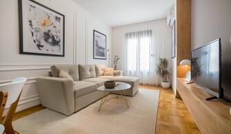Elegant apartment for sale in Becici, 350 meters from the sea. Nice design, new furniture and appliances. Good rental potential. Apartment area 42m2