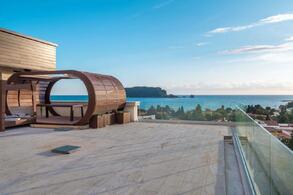 U detaljimaPenthouse 200m2 + terasa 200m2. Panoramski pogled na more. Bazen. Sistem pametne kuće. Do mora 200 metara.
